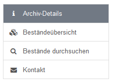 Links zu einer Übersichtsliste, welche die im Datenbestand gespeicherte Struktur der Bestände des jeweiligen Archivs abbildet. - Bestände durchsuchen