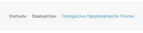 Zusätzlich wird ein Pfad angezeigt, welcher die Zugehörigkeit eines Bestandes zu einem Archiv abbildet. Die einzelnen Bestandteile dieses Pfades sind anklickbar und führen zum jeweiligen Element.
